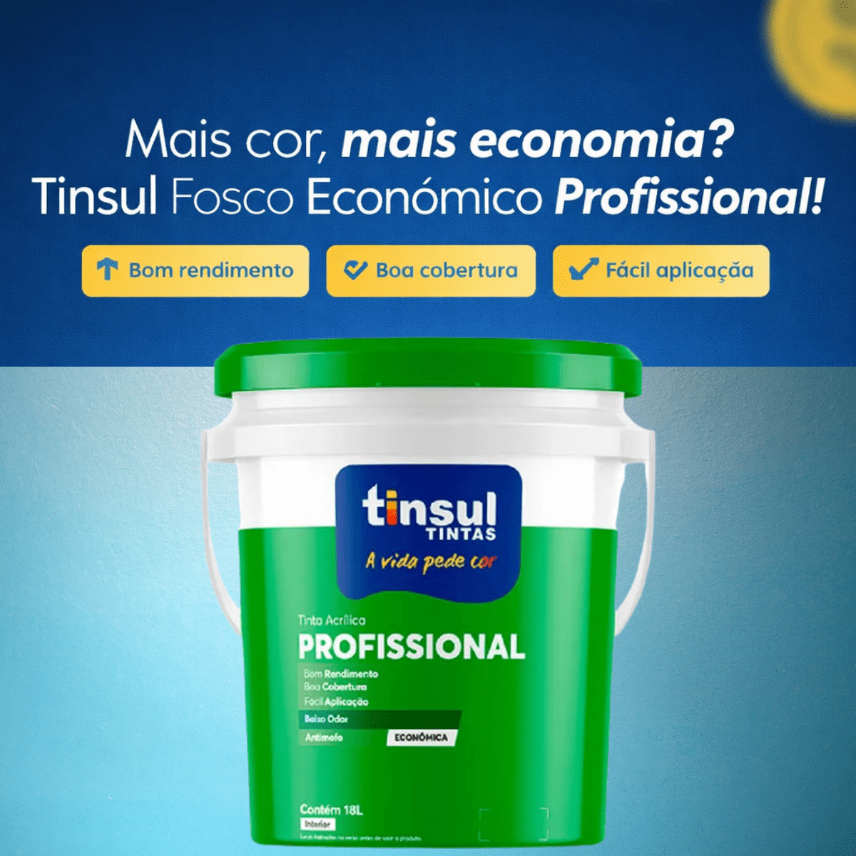 Transforme seus espaços internos com a qualidade e a economia do Acrílico Profissional Branco Fosco 18l da Tinsul. Obtenha um acabamento fosco elegante e duradouro em suas paredes, com excelente cobertura e rendimento.
