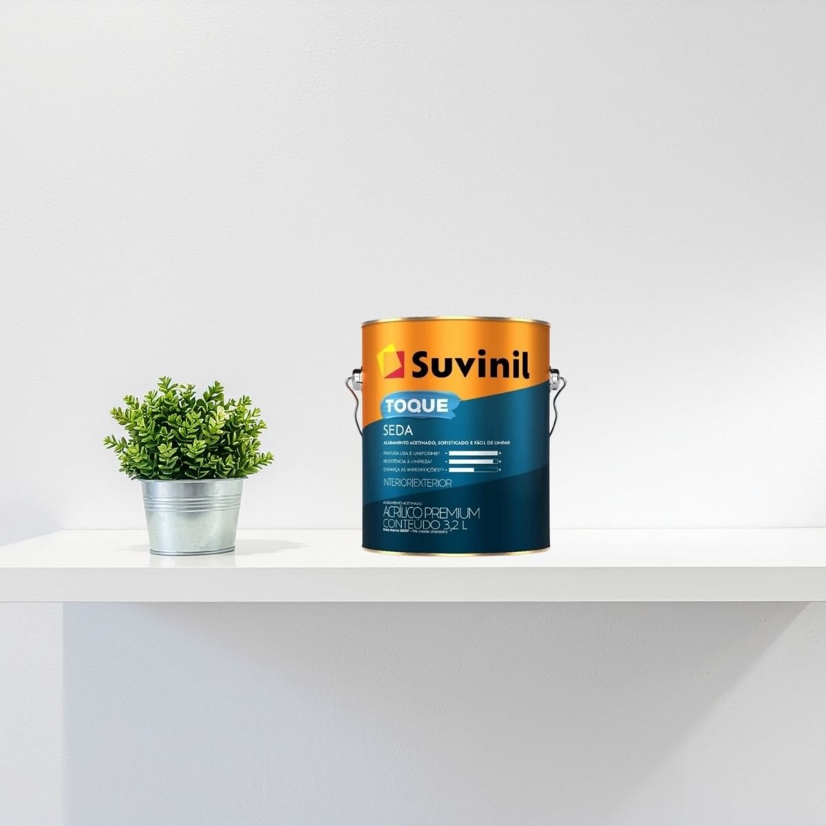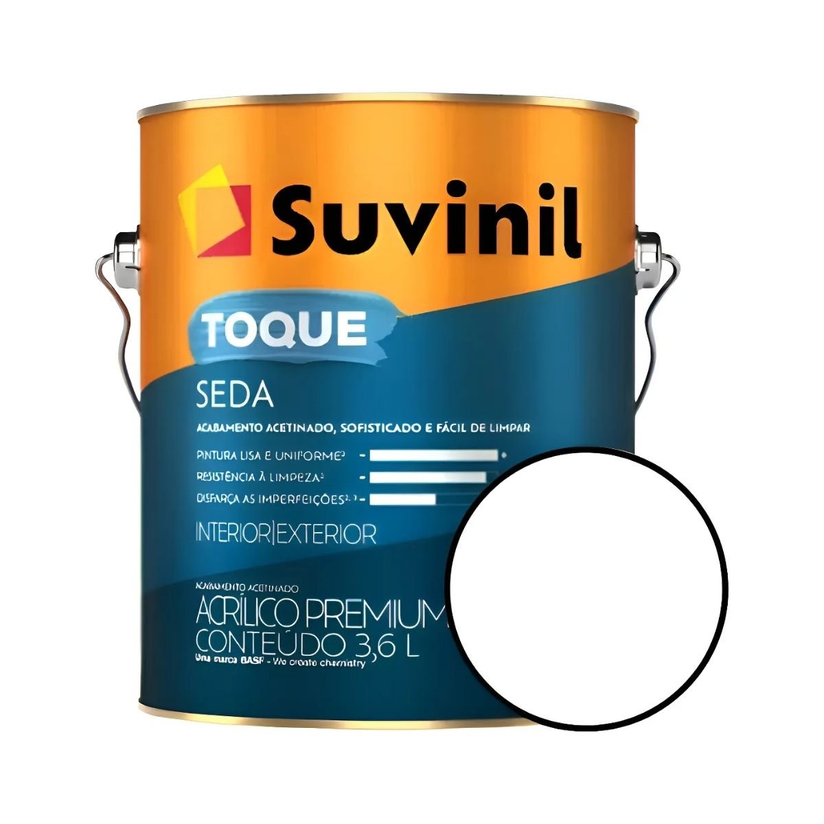 O Acrílico Toque de Seda Branco 3,6L da Suvinil é a tinta premium ideal para quem busca sofisticação e praticidade. Garante um acabamento acetinado brilhante, com toque suave e alta resistência à lavagem para paredes internas e externas.