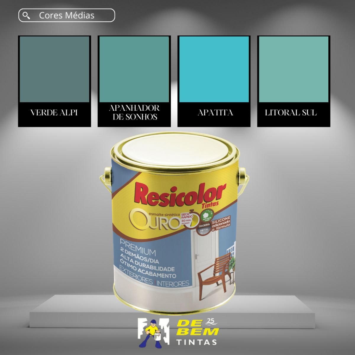 Compre Agora - Base Esmalte Média Ouro 810ml | Resicolor - De Bem Tintas - Há Mais de 25 Anos Colorindo com Você!