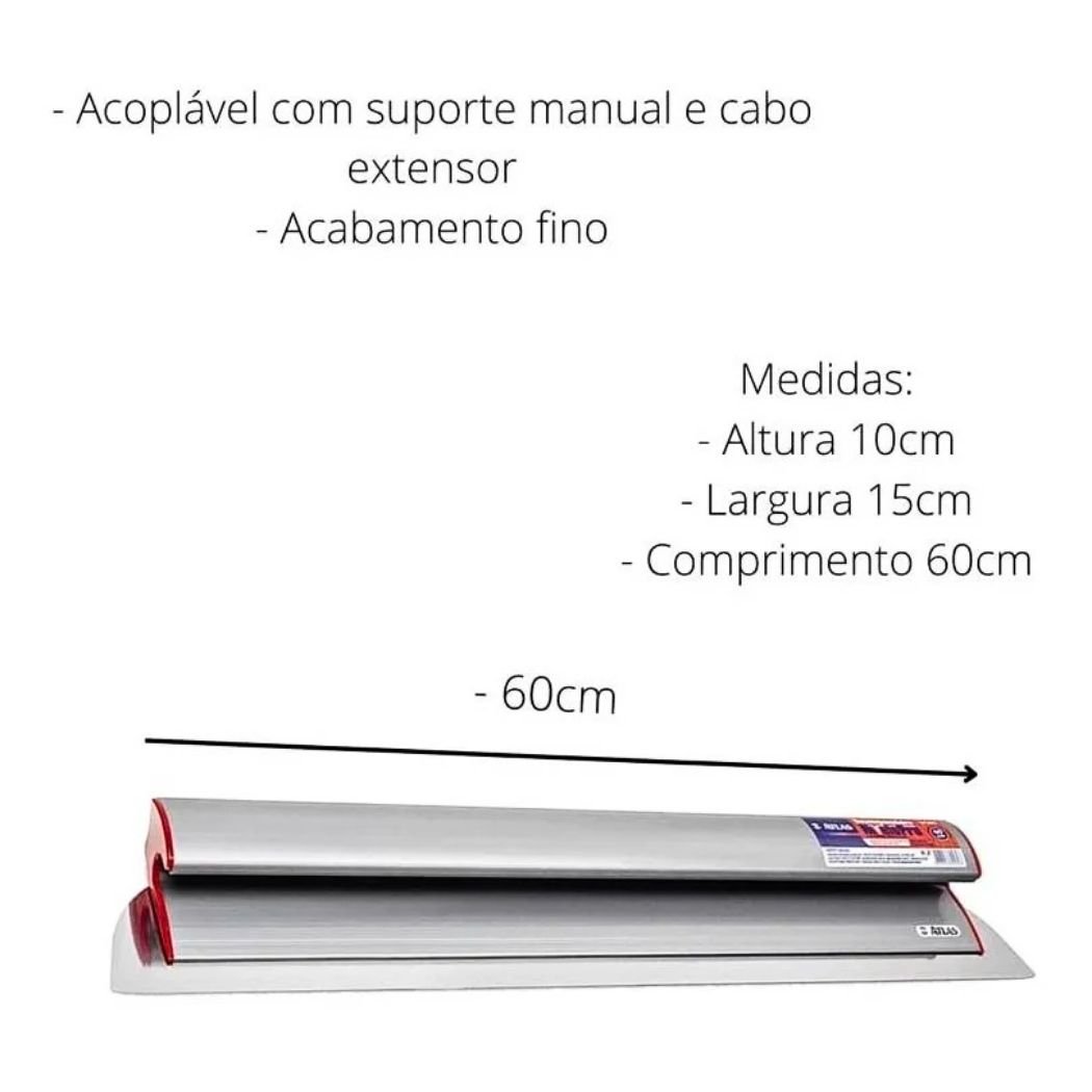- Máxima Produtividade: O comprimento de 60 cm permite cobrir maior área por passada, acelerando o processo de alisamento.