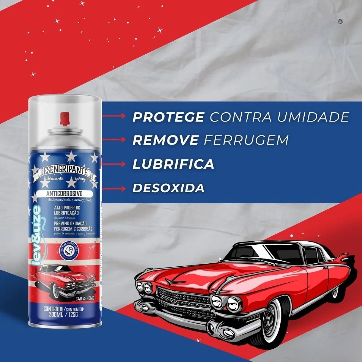 O Desengripante e Anticorrosivo da Lev&Uze é a solução ideal para manutenção geral, garantindo que suas peças e equipamentos sejam lubrificados, protegidos contra a ferrugem e que parafusos emperrados sejam soltos com rapidez e eficiência.
