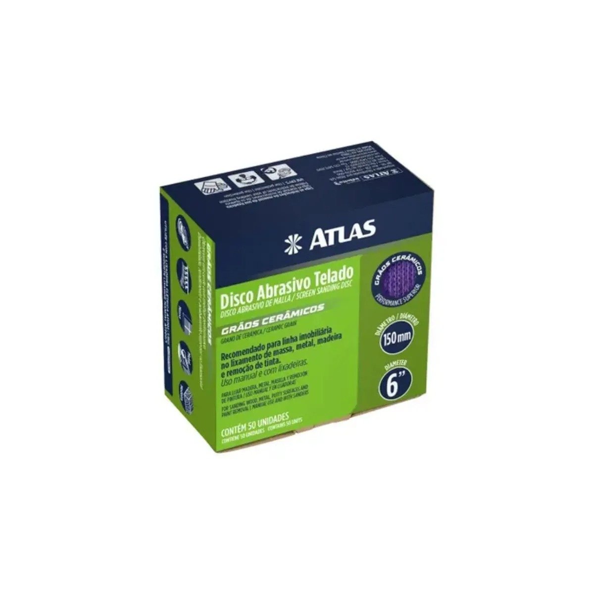 O Disco Abrasivo Telado 150 #240 | Atlas é ideal para lixamento fino e acabamento de superfícies como madeira, drywall, massa corrida, plástico e metais. Sua estrutura em tecido telado permite melhor circulação de ar e remoção de poeira, reduzindo o entupimento e aumentando a durabilidade do abrasivo. O grão #240 proporciona lixamento suave e uniforme, sendo perfeito para preparação da superfície antes da pintura ou aplicação de verniz.