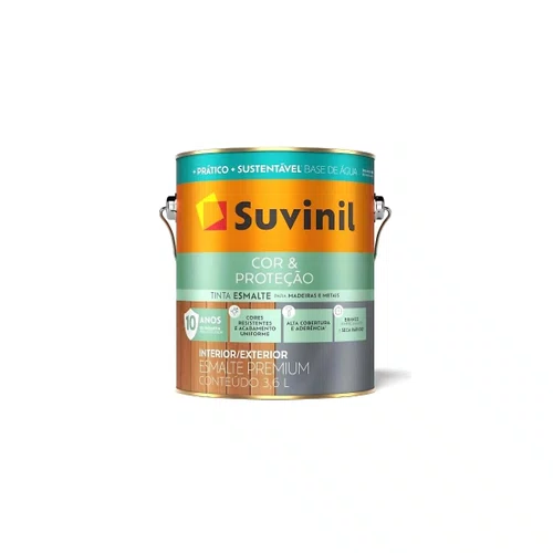 Transforme seus ambientes com praticidade e sustentabilidade usando o Suvinil Esmalte Cor & Proteção Base Água Branco Acetinado 3,6l. Com secagem rápida, sem odor e a garantia de um branco que não amarela, oferece excelente aderência, durabilidade e um acabamento acetinado impecável em suas portas, janelas, móveis e portões.