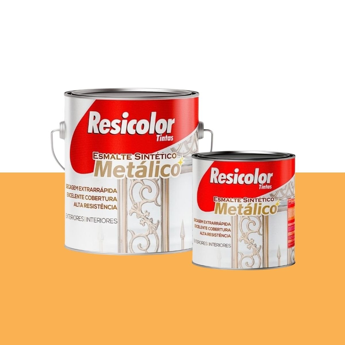 O Esmalte Sintético Metálico Amarelo Ouro da Resicolor é o produto ideal para proteger e renovar seus metais e madeiras, garantindo um acabamento metalizado brilhante de alta durabilidade e secagem extrarrápida.