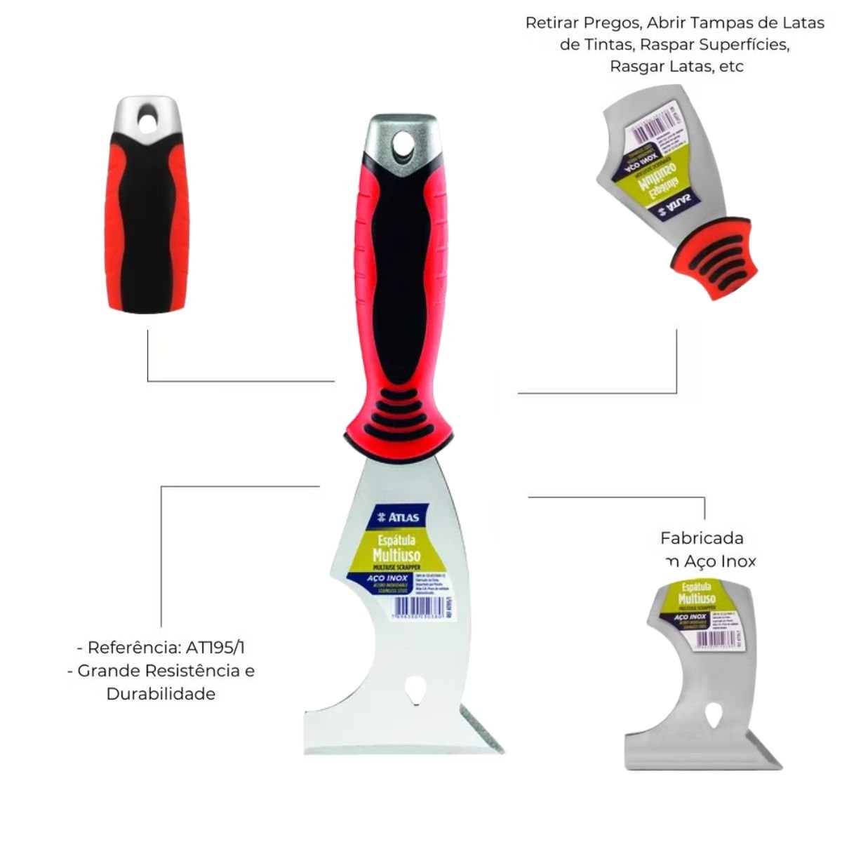 Com a Espátula Multiuso Atlas Aço Inox 195/1, você terá uma aliada completa para seus projetos, garantindo praticidade e um trabalho de qualidade.