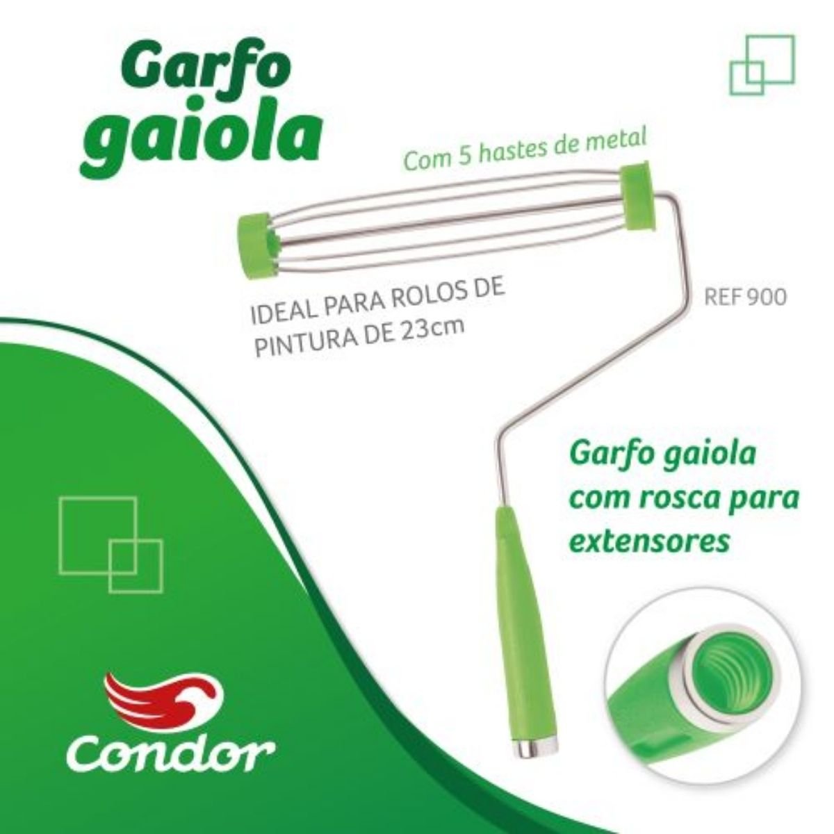 O Garfo Gaiola com Rosca 900 23cm da Condor é um suporte profissional para rolos de pintura, projetado para oferecer máxima firmeza e estabilidade durante a aplicação da tinta. Com sua estrutura tipo gaiola e sistema de rosca, ele garante que o rolo não deslize, proporcionando um acabamento mais uniforme e eficiente, especialmente em grandes superfícies.