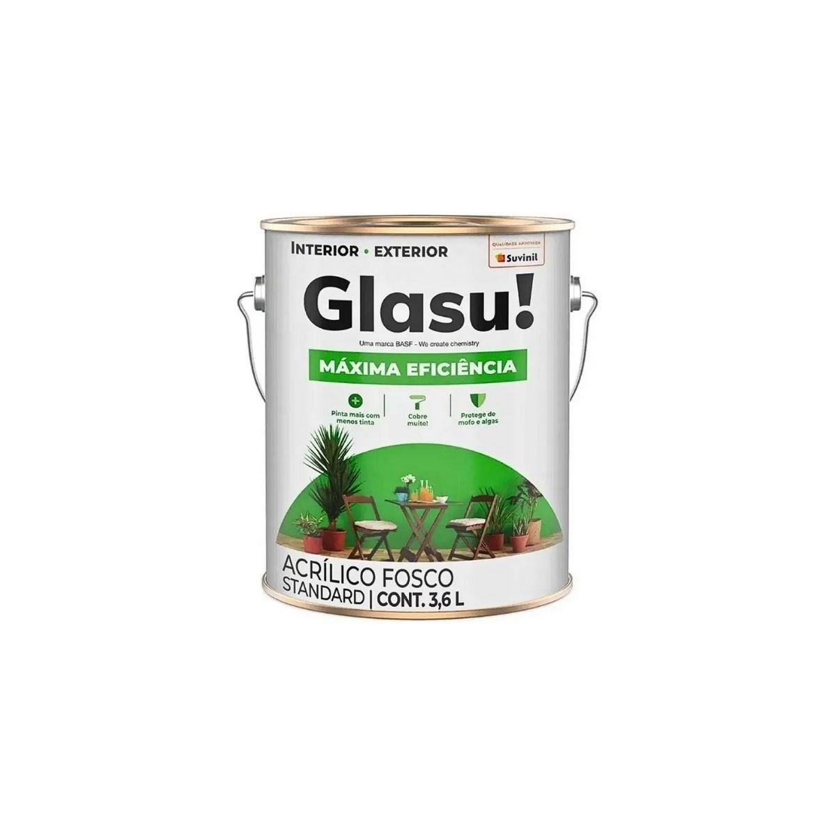 Com a Glasu Acrílico Máxima Eficiência Branco Neve 3,6l da Suvinil, você terá uma solução completa para renovar seus ambientes com qualidade, durabilidade e economia.