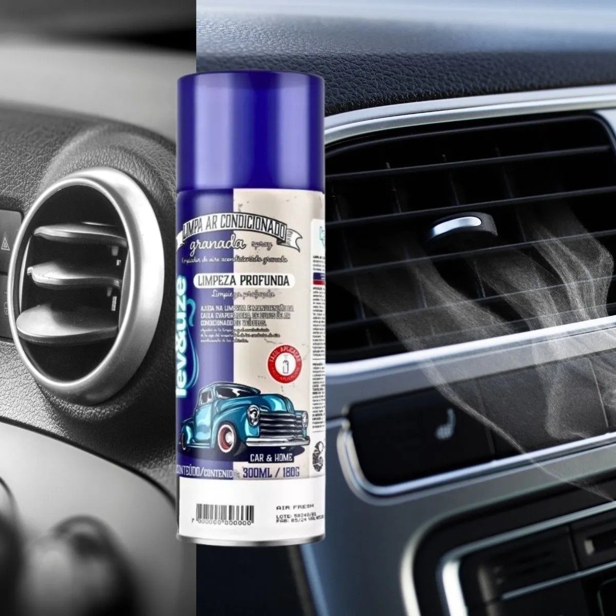 O Limpa Ar-condicionado Granada Air Fresh da Lev&Uze é um produto higienizador em formato aerossol, desenvolvido especificamente para a limpeza profunda e desinfecção do sistema de ar-condicionado. Utilizando o sistema de trava, ele libera uma névoa contínua (estilo granada) que circula pelos dutos, eliminando fungos, bactérias e odores desagradáveis, enquanto deixa uma fragrância Air Fresh agradável. É ideal para uso em veículos (carros, ônibus, caminhões) e em qualquer ambiente com ar-condicionado, ajudando na prevenção de problemas respiratórios.