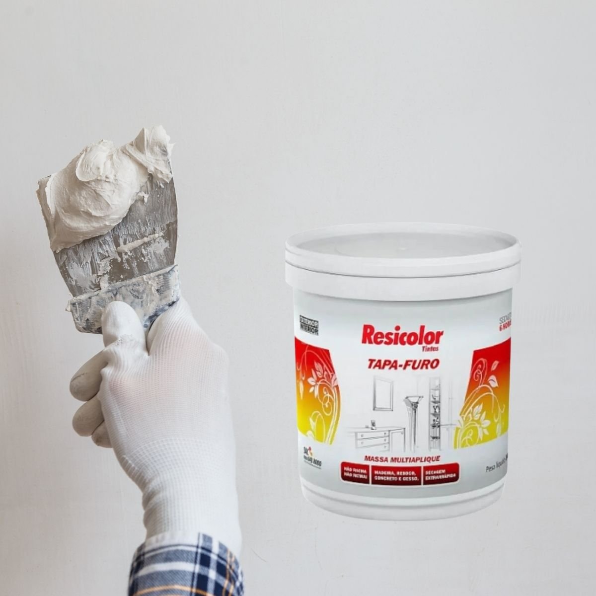Com a Multimassa Tapa Furo 340g da Resicolor, você terá um aliado rápido e eficiente para deixar suas superfícies impecáveis, prontas para um novo visual.
