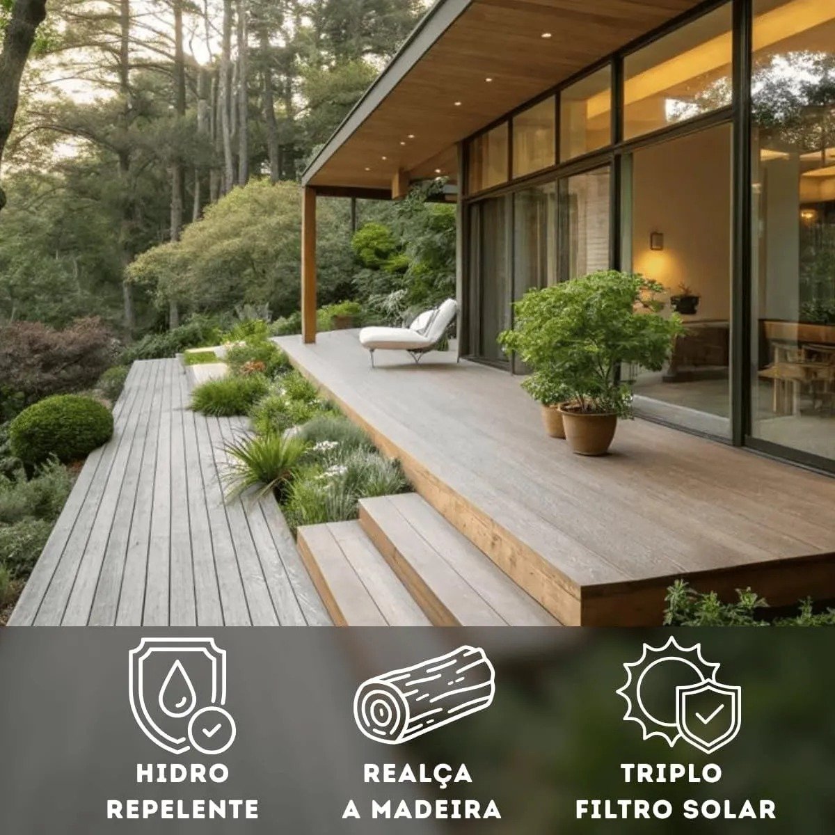 - Superfícies indicadas: Madeira, decks, pergolados, portões, vigas e áreas externas de madeira