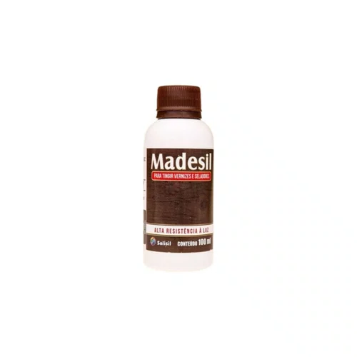 O Tingidor Madesil Mogno 100 Ml | Salisil é um produto desenvolvido para realçar e uniformizar a cor da madeira, proporcionando um acabamento natural e elegante. Ideal para restauração de móveis, portas, janelas e objetos decorativos, garante o tom mogno característico, preparando a superfície para receber verniz ou acabamento final.