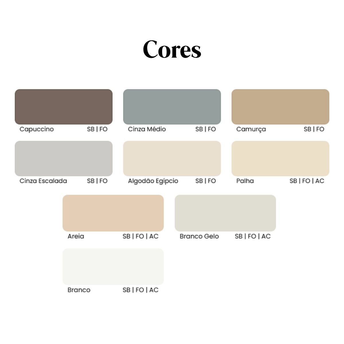 • Acabamento: Fosco