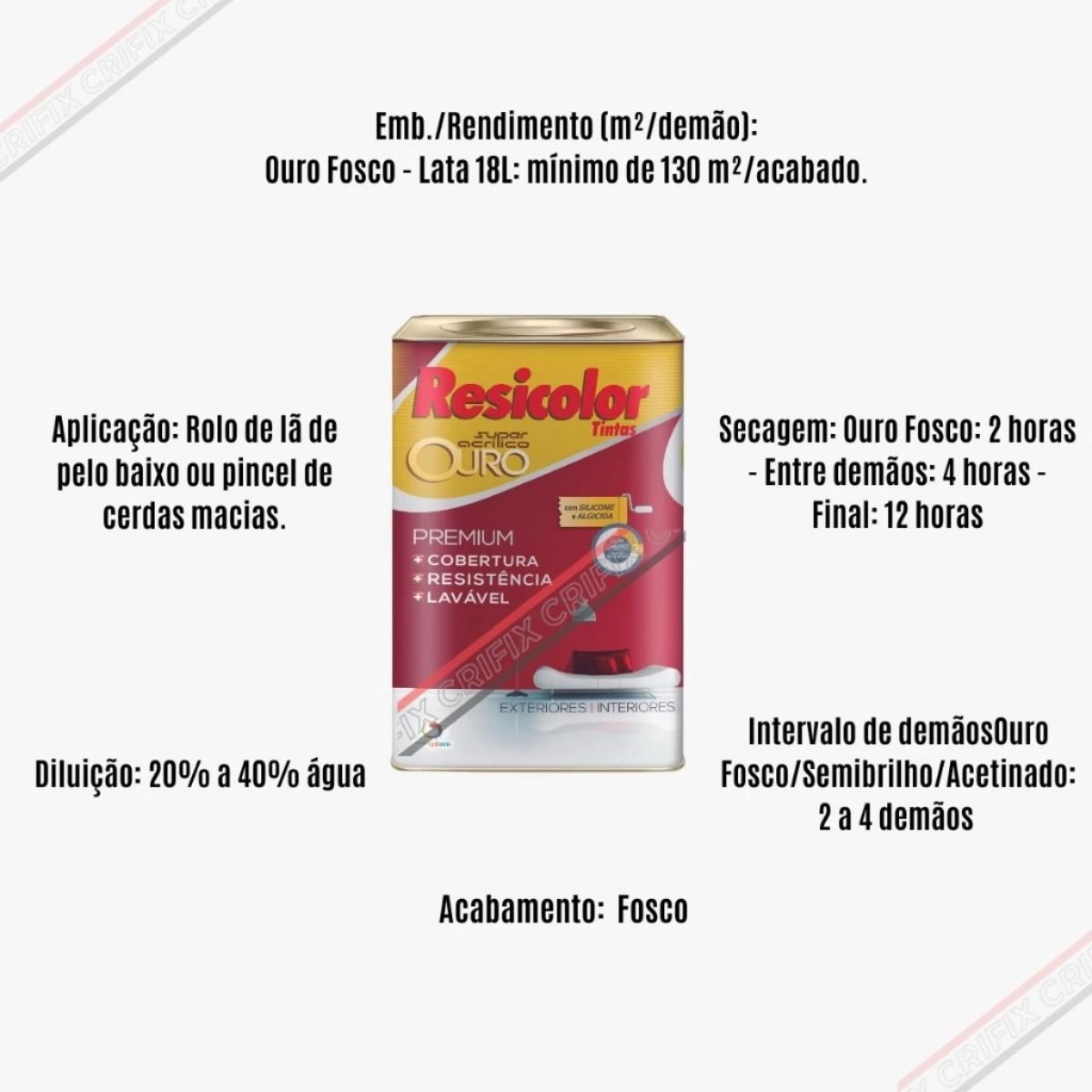 • Diluição: Água potável (10 a 20% para rolo, pincel ou trincha)