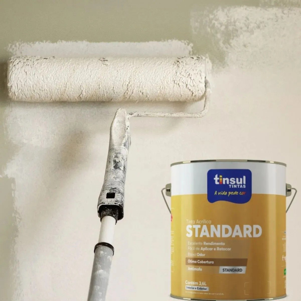 A Tinta Acrílica Standard Branco Fosco 900ml | Tinsul é ideal para pintura de ambientes internos, oferecendo acabamento fosco uniforme e ótima aparência estética. Indicada para pequenas reformas e retoques, proporciona cobertura eficiente e visual moderno para paredes e tetos.