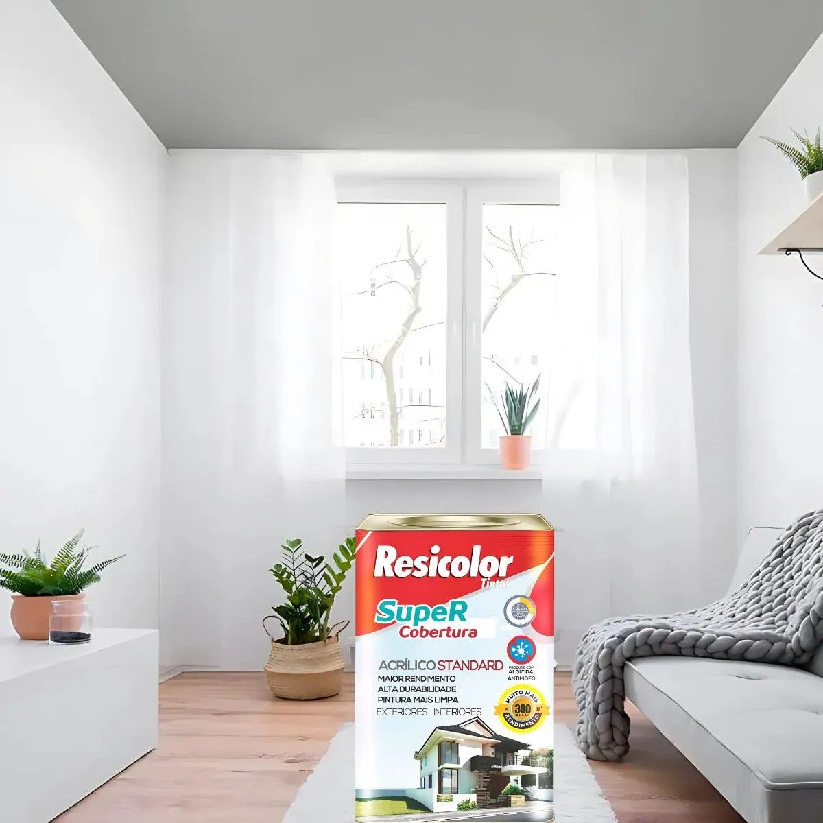 A Tinta Acrílica Super Cobertura Branco Semibrilho 18L da Resicolor é a escolha ideal para quem busca uma pintura com acabamento sofisticado, alta resistência e fácil manutenção, valorizando a beleza e a durabilidade dos seus ambientes.