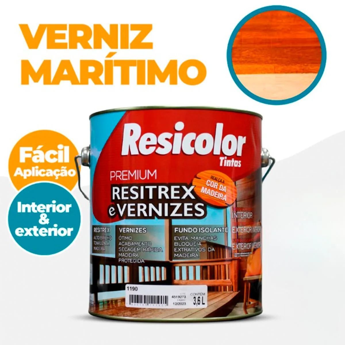 Compre Agora - Verniz Resitrex Castanho 900ml | Resicolor - De Bem Tintas - Há Mais de 25 Anos Colorindo com Você
